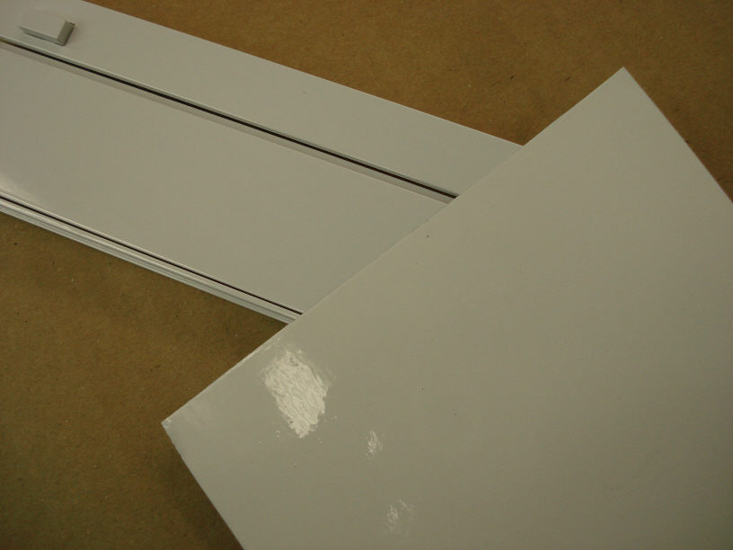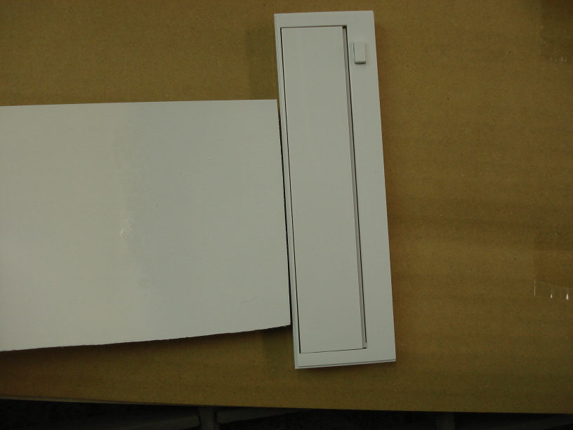 今回ご希望の色は「白」で、色見本として送られてきたのはディスクドライブの蓋です。艶ありの白ですね。