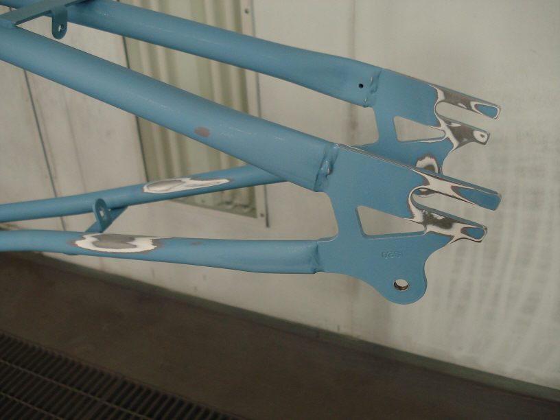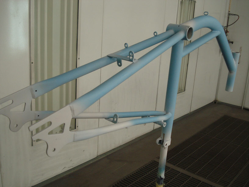 こちらもお待たせしました!ショップデモ車となるママチャリですね。無事本塗り完了しておりますのでご安心下さいませ!