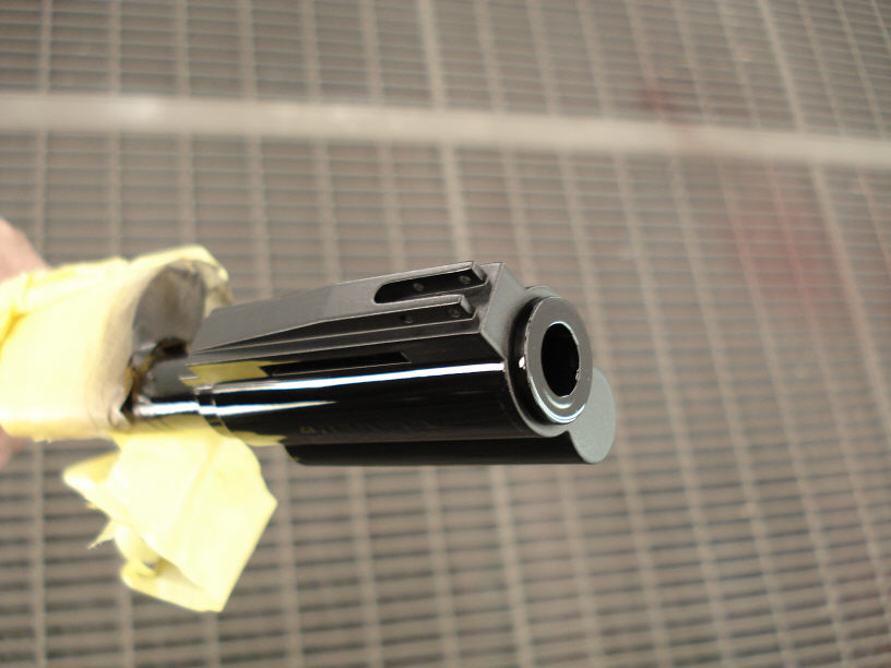 銃口の丸い部分は艶ありで、その周りの面と、上の照準がある面が「艶消しの黒」になってます。