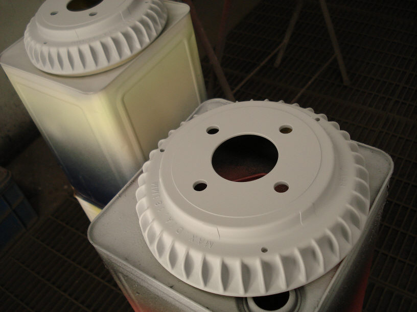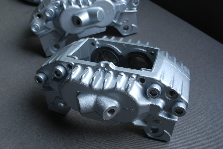 こちらも下地はプライマーの塗布だけですので、素地の悪さ(バリ)などは残ったままですが、着く場所がホイールの中ですので問題無いですね。それよりも塗らないままよりは汚れの付きかたも全然違うと思います(勿論腐食も)。