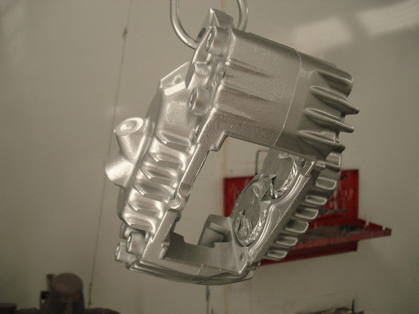製品は新品ですが、そのままだと塗料の食いつきが悪いので全体的にサンドブラストを掛けます。