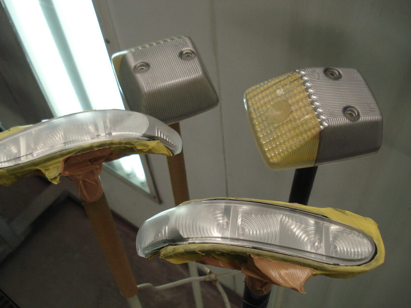こちらはボンネットの左右に付くウィンカーですね。 バイクのようにレンズのみ外れるので裏側はきっちりマスキングしておきます。