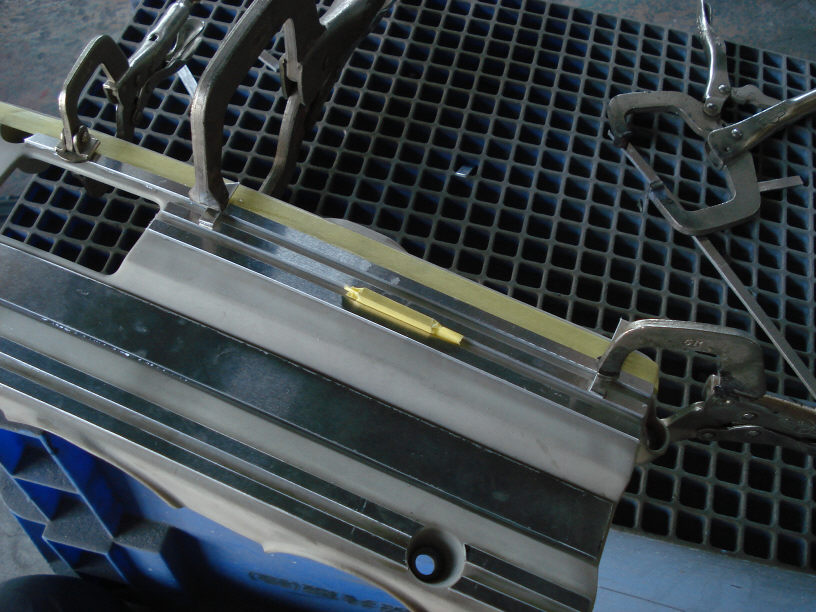 またパネルは若干のアール形状になっている為、アルミ板をそのまま置いても浮き上がってしまいますので、予めパネルと同じ緩やかなカーブに合わせて手曲げ加工しておきます。