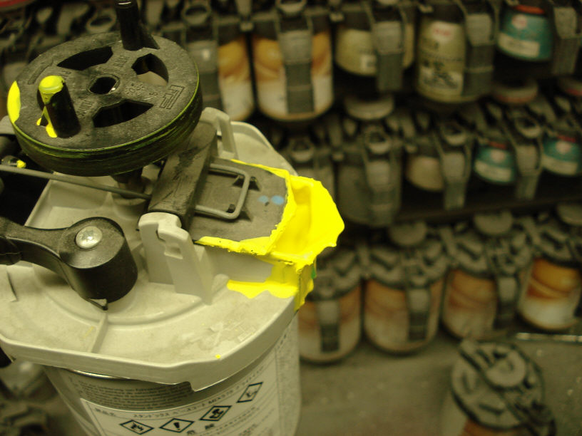 ちなみに当店が使っている塗料はドイツ製の「STANDOX」なるメーカーの塗料ですが、それぞれの缶に色名が書いてあるのですが最初は全然解りませんでした…(厳)。