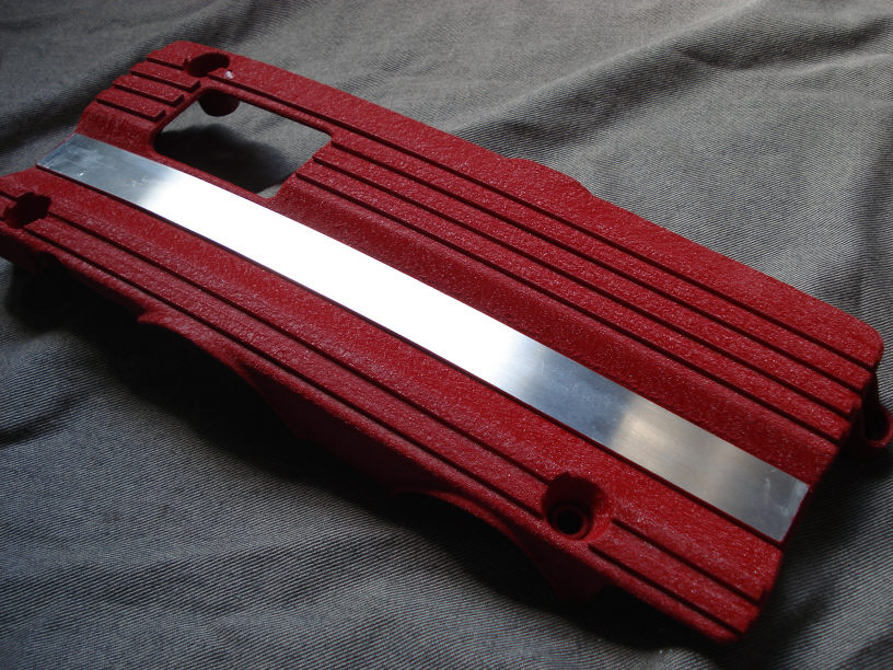 先日サンドブラスト処理までしておいたインマニカバー(プラスチック)はこの後「赤の結晶塗装」になりますが、それとは別に「アルミフィン」の取り付けをご依頼いただいております。