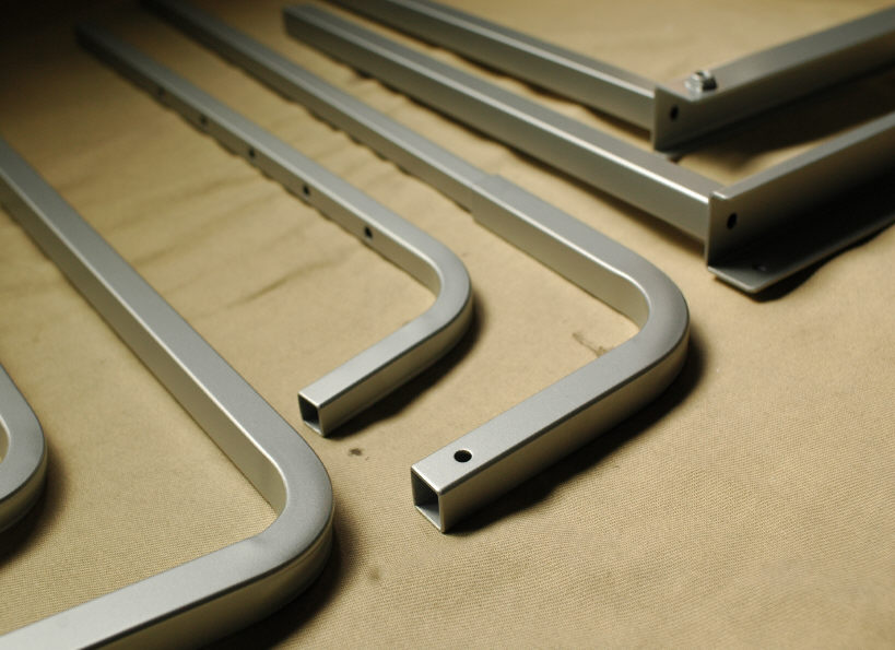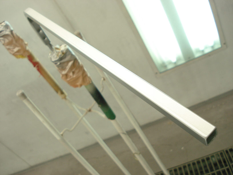 ちょっと解り難いですが、シルバーに塗ってクリアーは半艶仕様にしています。 1cm四方の鉄製のステーで、これらが6本組み合わさって、高さや幅の調整が可能な水槽用の照明スタンドになります。 最初からアルミで作ってくれていればこんな事をしなくてもいい気がしますが…(作戦でしょうか…)。