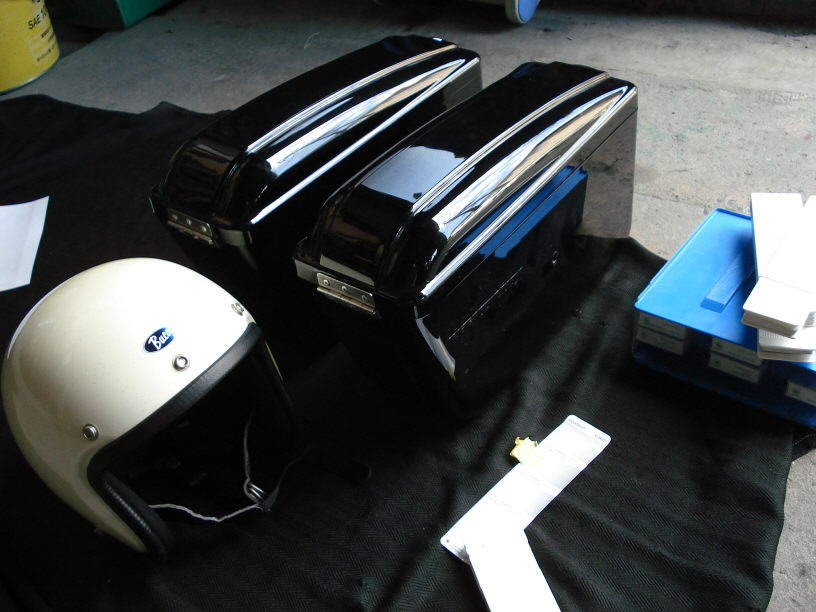 ご依頼品はバイクのサイドボックスで、現状でもとても綺麗な状態です。 今回こちらをボディ同色のシルバーに塗装ご依頼頂きました。おまけでヘルメットも、です。