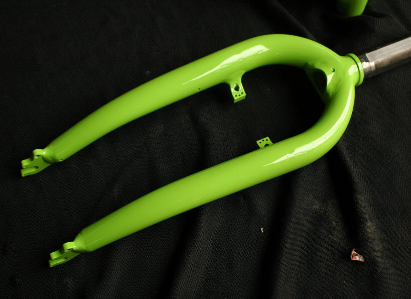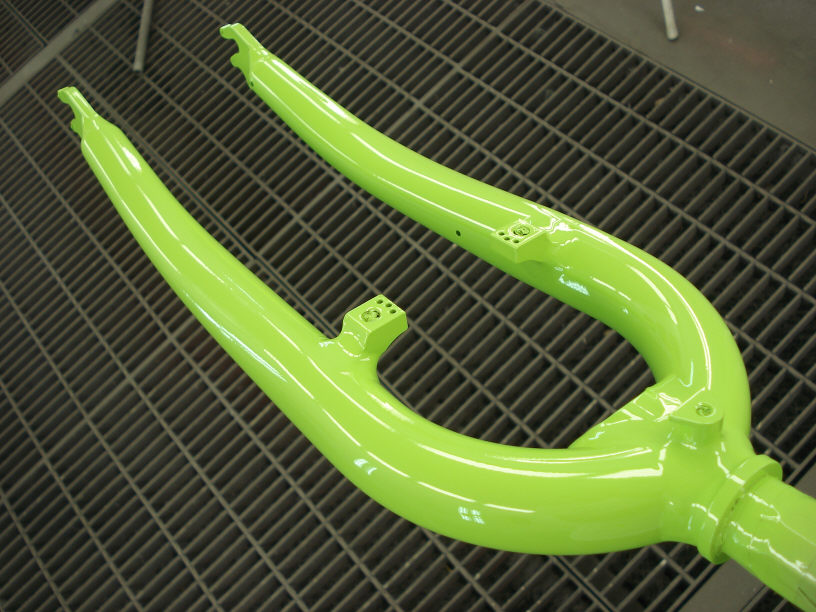 マスキング部分の指定としてはフォークの上側のみでして、「その他は塗っても構わないしお任せします」との事でしたのでネジ穴だけは塗らないようにしておきました。
