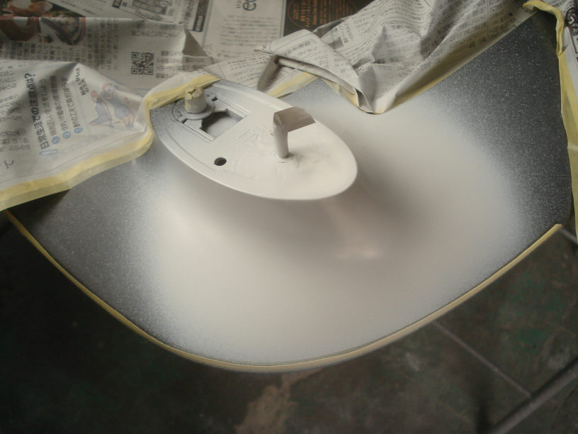 画像は本塗り前の状態ですね。足付け処理されているので艶が無い状態です。 足付け処理=全体的に無数に傷が付いた状態でして(この場合#1000程度)、これによってこれから塗る塗料がガッチリ食いつく訳ですね。表面積の拡大と投錨(アンカー)効果によるものです。