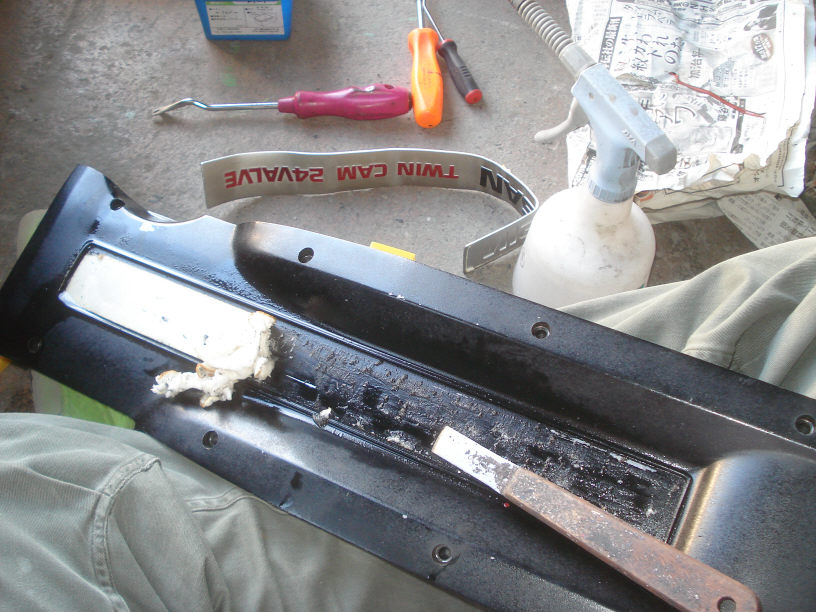 RB26のプラグカバーには文字が入ったアルミプレートが貼ってありますのでこれは剥がします。