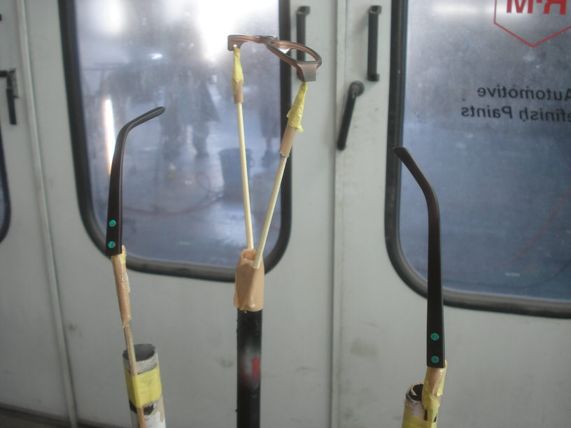 ただこれが結構厄介でして、メガネのフレームの場合も少々面倒です。 これといった固定ジグも無いので、今回もアルミワイヤーで割り箸に固定といった方法です(苦)。