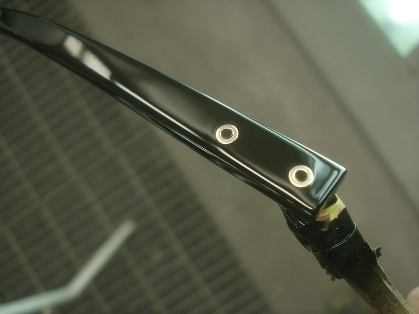 こちらはテンプル部分(耳に掛かるフレーム)ですね。例の目玉も良い感じで出来ました。奥の目玉は曲がって見えますが、この部分は若干隆起しているのでそう見えるだけでして、実際にはちゃんと「円」になってますのでご安心下さい。まぁ大変でしたが(爆)。