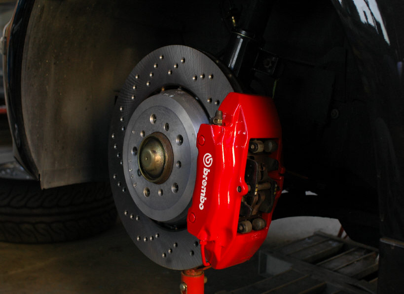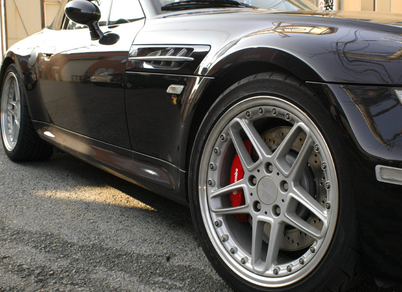 当店では車体は扱っておりませんので誤解されませんようお願い申し上げます。 こちらはいつもご贔屓頂いているブレーキ屋さんの作業風景ですね。 キャリパーは先日塗らせて頂いた物です。先日取り付けてました。