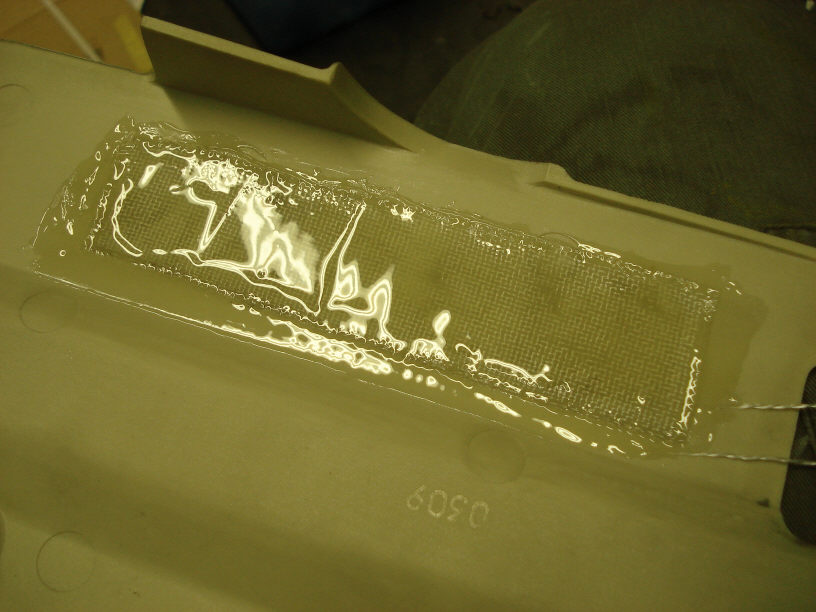 で、補強の為にファイバークロスを一枚貼り、さらにエポキシ樹脂を浸透させます。