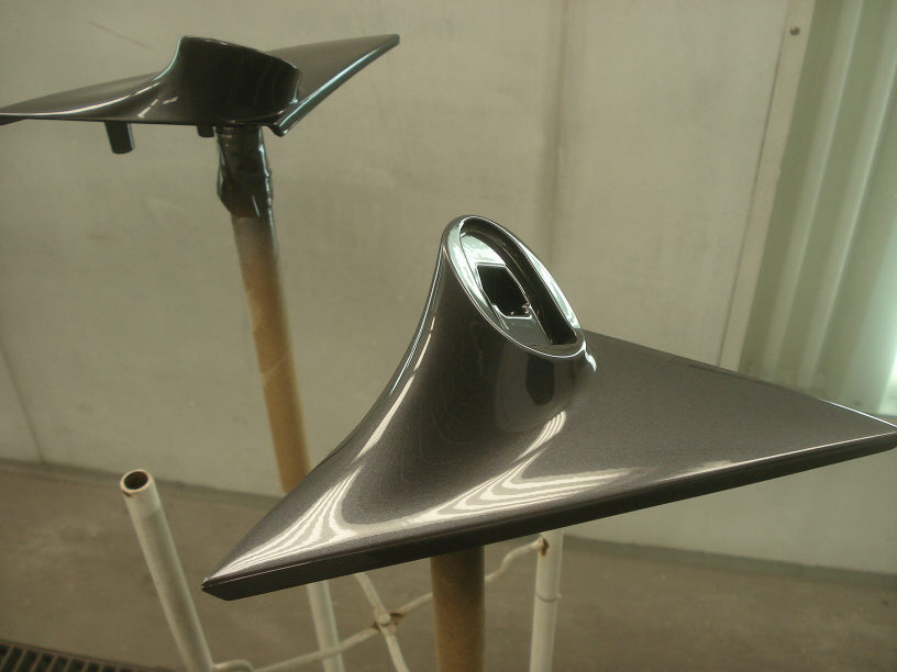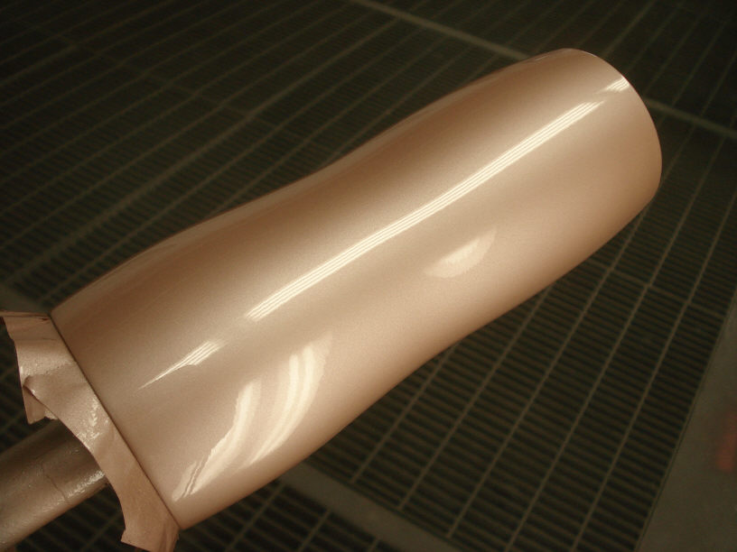 作業的には結構面倒ですが、設備と材料と工具さえ揃っていれば3〜4時間でここまで出来ます。 ただ本当に3〜4時間も付きっ切りになると赤字になってしまいますので(苦笑)、熱を掛けて待っている間には他の作業を行います。実作業時間は半分くらいですからね。塗装だってスプレーガン握っているのは数分で、実はそこまでと終るまでのセッティングに時間を要するのです(脱脂やらエアーブローやらスプレーガンの洗浄などですね)。