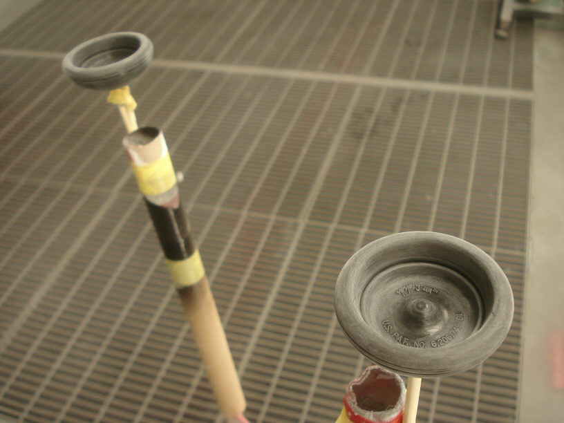 で、先に内部にプライマーを塗っておきます。 どれも筒状の角パイプなので、両側からスプレーガンでプライマーを塗り、乾く前に勢い良くエアーブローをして内部のプライマーを伸ばします。 余計な分は画像のように穴から出てきますので、これはシンナーでふき取ってしまいます。
