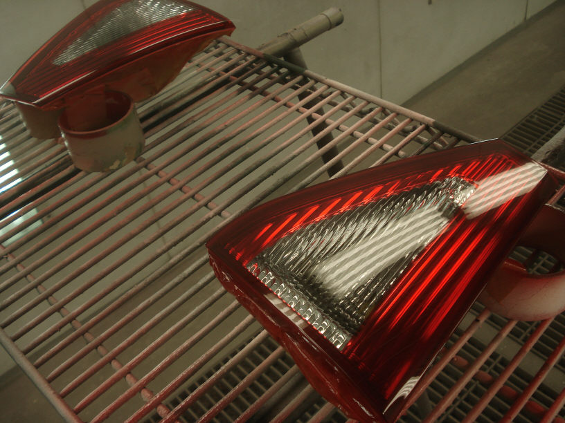 こちらはかなり前にお預かりしたインプレッサのテールランプで、元々キャンディーレッドにクリアー抜きのみのご依頼でしたが、途中から追加で全体にスモークの塗装を承りました。良い感じに仕上がったと思います。