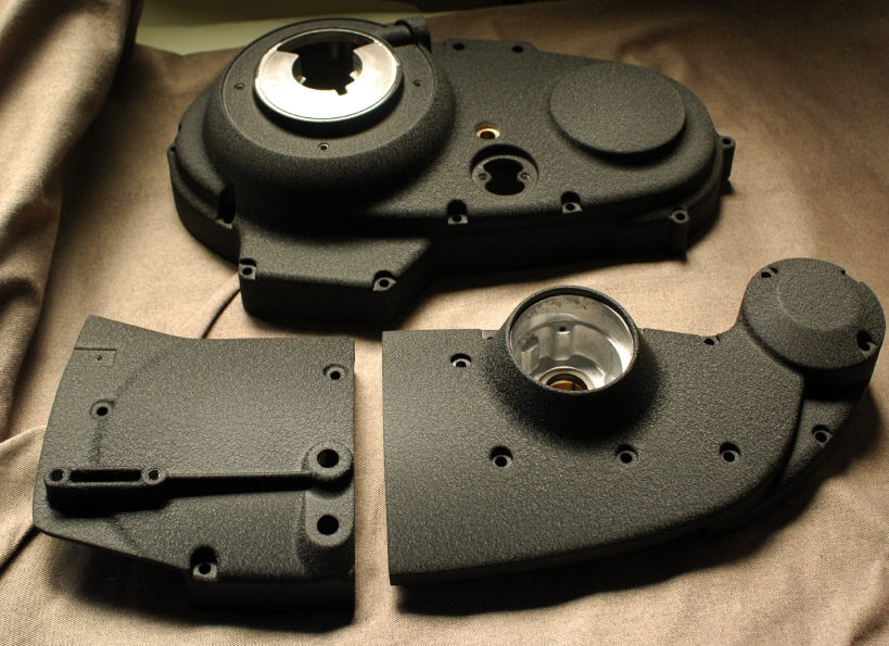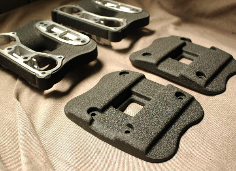 これは途中「完全硬化〜研摩」といった工程をしていないので、金属素地にあった細かい傷やケガキ線などそのまま残った状態で仕上がってしまいますが、そこの処理がコスト掛かるところでもありますので、エンジンパーツや足回り部品はこれでOKだと思います。カウルとは違いますからね。