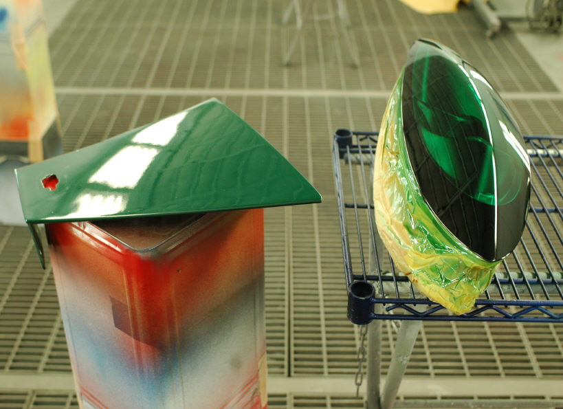 透過性のある塗装は、通常の「完全隠蔽」の塗装と違って褪色が早いと思われますので、使用するクリアーは耐紫外線効果の高い「クリスタルクリアー」が基本となっております。 スタンドックス(当店が使う塗料メーカーですね)の中でも最高レベルのクリアーです。