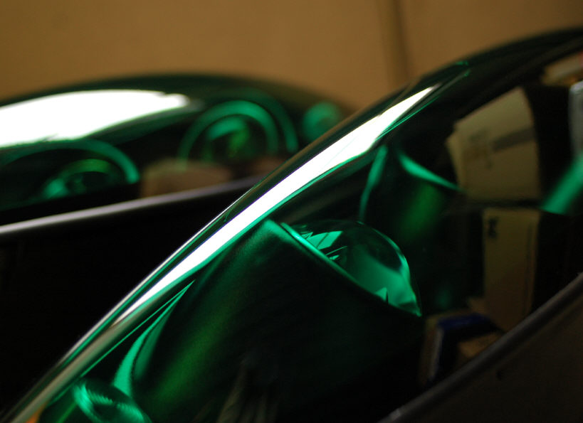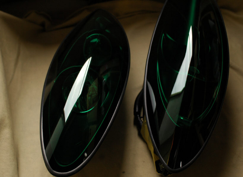「黒い縁の部分もグリーンに」とのご要望でしたが、グリーンは透過性があるので黒は殆どそのまま残ってます。何卒ご容赦下さいませ(隠蔽してしまえばグリーンに出来ますが、そうなるとライトの明かりさえ見えなくなってしまいますので…)。