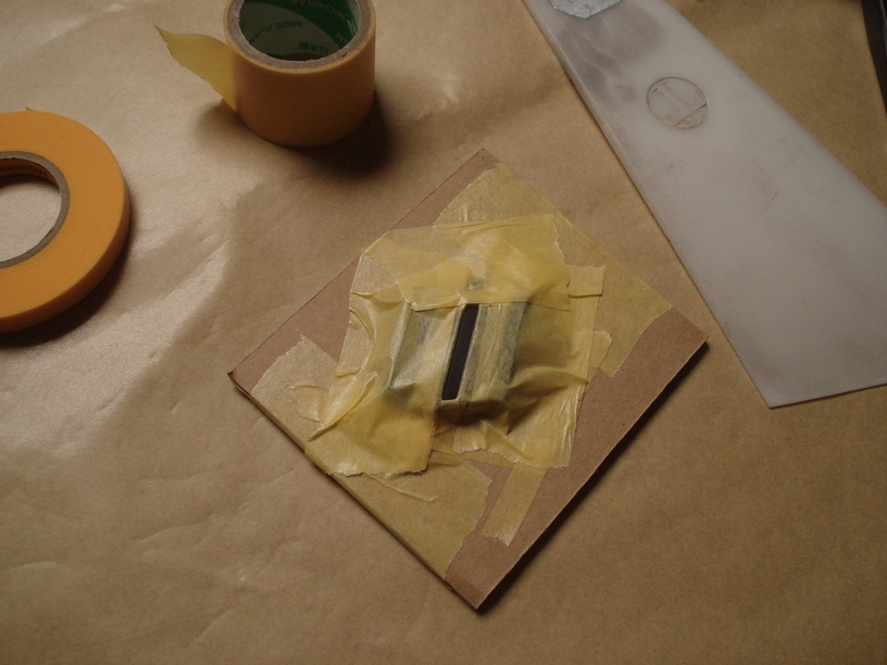 ちなみに画像の左に写っているマスキングテープは6mm幅のものですね。こういった細かい作業の場合には毎回新しいテープを出します。テープの側面にホコリが付いて使い物にならなくなるんですよね。