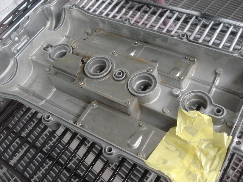 ヘッドカバーの塗装でご依頼頂く場合の多くは恐らく中古品を業者さんから購入されているのだと思います。 で、それを塗装施工して今付いているヘッドカバーと交換といった形でしょうか。車検のついでなどに整備工場やディーラーさんでやって貰うように事前に手配しておけば楽ですしね。意外とヘッドカバーの交換は難しくないので、ガスケット交換とセットでお願いしても工賃はそんなに高くはないと思います(ボルト外して付けるだけですからね)。