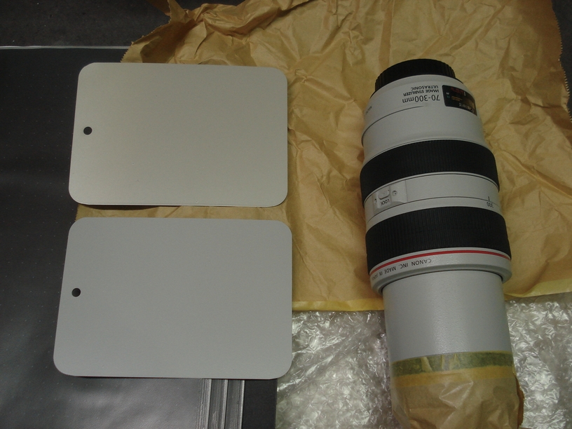 一番最初にキャノンのレンズフードの塗装をご依頼頂いた時に「今後の為に…」とグレーベージュ色は1リッター程度作っておいたのですが、そろそろ無くなってきたのとレンズが違うと色味も違うのでは、と思った次第で今回色合わせさせていただく事になりました。お手数を頂き有難うございます。