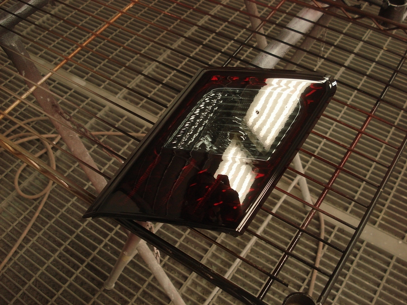 こちらは赤というよりも朱色っぽさが強いので、テールランプと合わせるにはそれよりスモークを濃くした方がよさそうですね。←といった感じでいつもテールランプに合わせて濃度を微調整します。 予め「薄め用」「標準用」と塗料が出来ている訳では無く、その都度調整している訳ですね。 テレビ的に言うと「職人が一品一品それに合わせて濃度を調整」なんて感じですが、現場の人間からすると「毎回現物合わせ」みたいな感じです(爆)。プロジェクトXが叩かれたのが良く解ります(某番組です。私的見解です)。