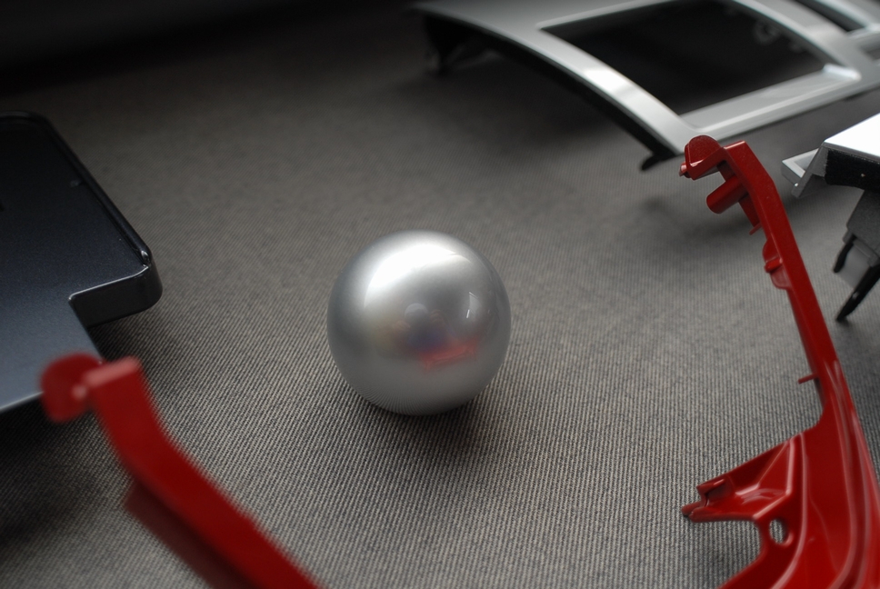 後で聞いたらゴトー氏も同じように思っていたようで、「これ本当にベンツのあの色?」と不思議がっていました。球体になるとまるで色の見え方が違うんですね。やはり塗装は面白いです。