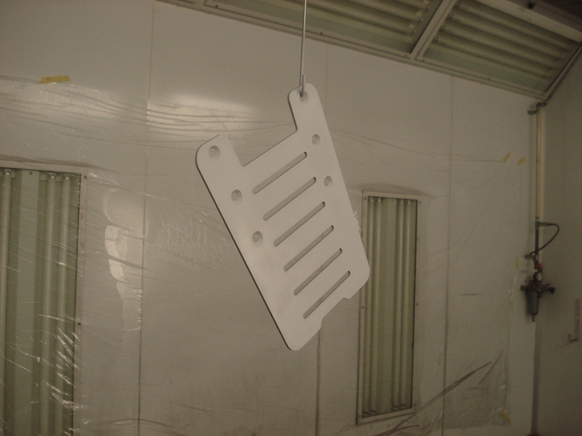 こちらもお待たせしました!バイクのトップケースの固定台となるステンレス板ですね。艶ありの黒で本塗り完了です。