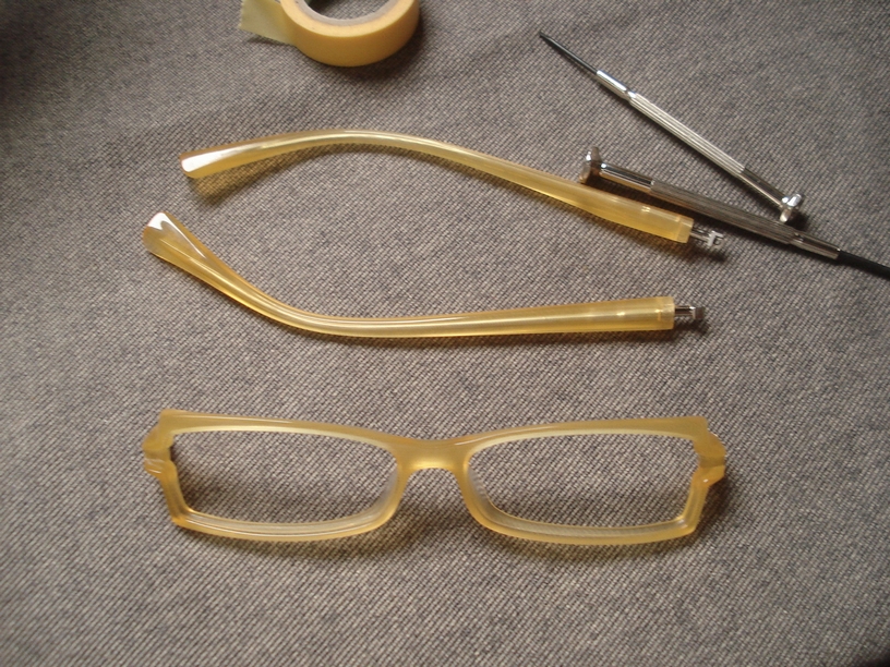 分解は精密ドライバーのマイナスだけですので簡単です。ただネジを無くすと大変な事になるのでそれの保管はかなり気を付けます。 メガネ専門でやっていればそういった小物部品も充実させて揃えておいたりと結構楽しそうなのですがそれはまだまだ無理そうですね。