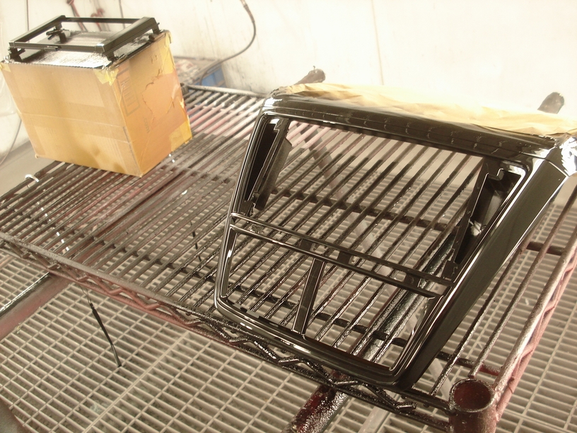 元々は装飾クロムメッキでしたので、それ専用の下地を作ってあとはいつも通りベースコートに黒を塗って艶消し仕様のクリアー(勿論2液ウレタン)を塗って本塗り完了です。