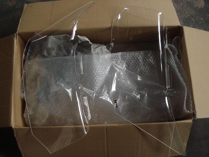 先日テールランプのスモーク塗装でご依頼頂いた方で、今回はヘッドライトに被せる透明なカバーをスモーク塗装でご依頼頂きました。濃度は「標準と濃い目の間くらい」といった感じです。
