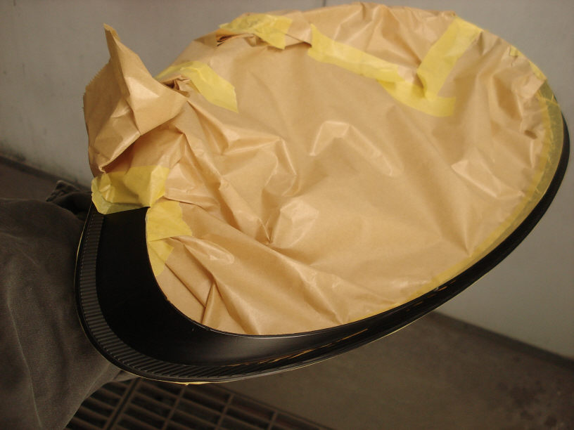 アイラインは社外品のFRP製品で、お世辞にも出来が良いとは言えない製品ですので(謝)そのまま塗るのは難しく(いや、作業的にはこのまま塗る方が楽なのですが…)、一旦は表面を削ってサフェーサーでの下地を作り直すことにします。