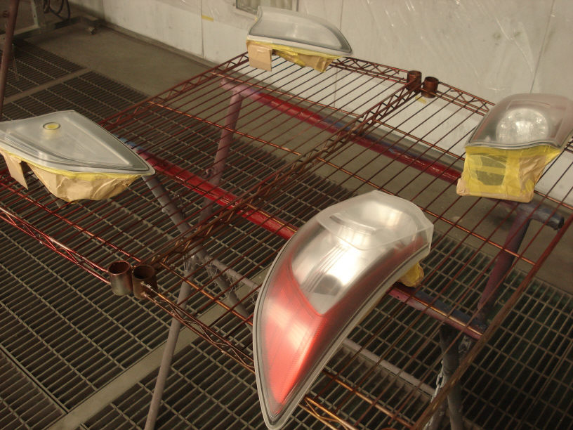 で、Z4のパーツ4点と、このインプレッサのテールランプ4点、合計8点を平行してレッドキャンディー塗装を行います。 こうやって効率をあげてやれば、比較的どこの塗装屋さんも嫌がる(笑)小物製品の塗装でも採算を合わせられるのです。