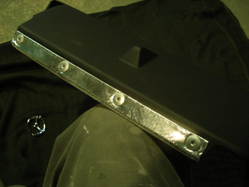 曲げてシワのついたアルミシートをピンとさせ両面テープを張っておきます。 また先ほど外したリベットと同じ物を用意しておきます。
