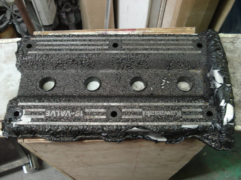 先週から溶剤槽にドブ漬けにしておいたヘッドカバーですね。良い感じで塗装がフヤけています。まさにフラクタル、といった感じですね(壊)。