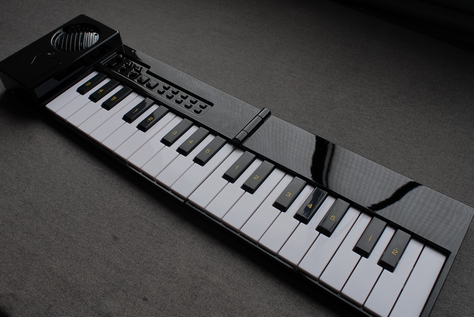 折り畳むとコンパクトになるので鞄に入れてどこでも持ち歩けるのがこのピアノの利点みたいですね。力を(そしてお金を…)注いているのが良く解ります。