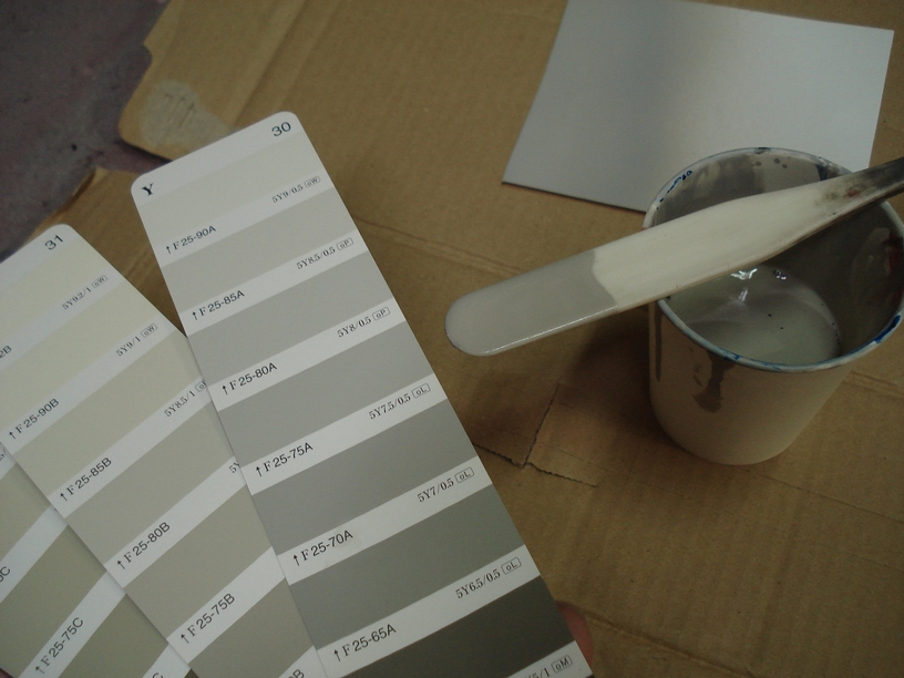 使用しているのは日塗工の色見本帳で、それに合わせて目調色で作ります。