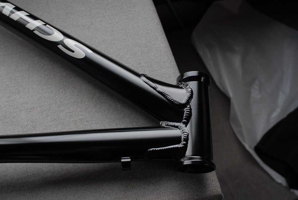 大変お待たせしまいた!シューウィンの自転車フレーム、半艶黒塗装で完成です!。ちなみに読めなかったロゴの読み方教えて頂きました(笑)。