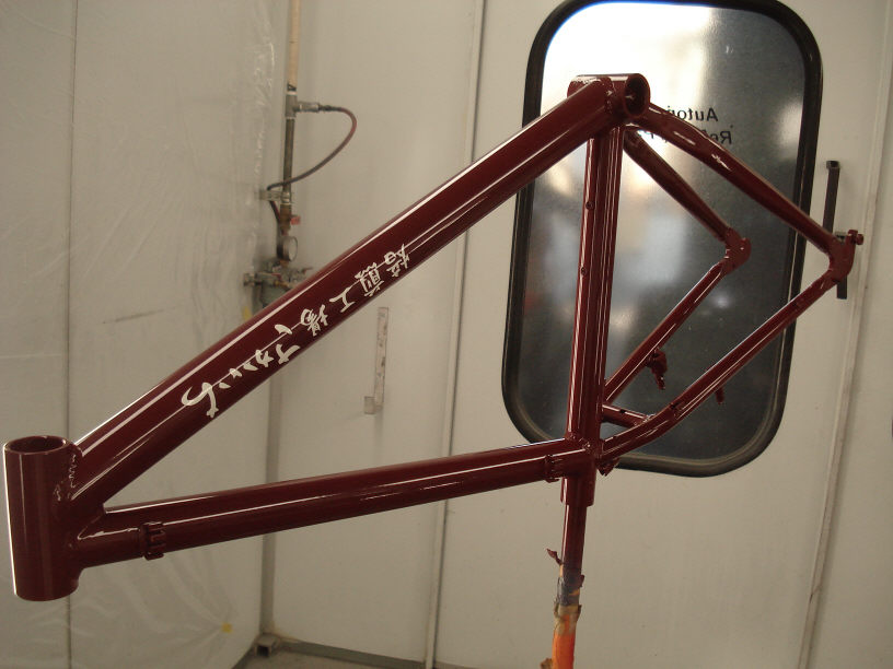 「焙煎工場さかいち」仕様の自転車フレームですね。いよいよ本塗り開始です。掲載お待たせしました!