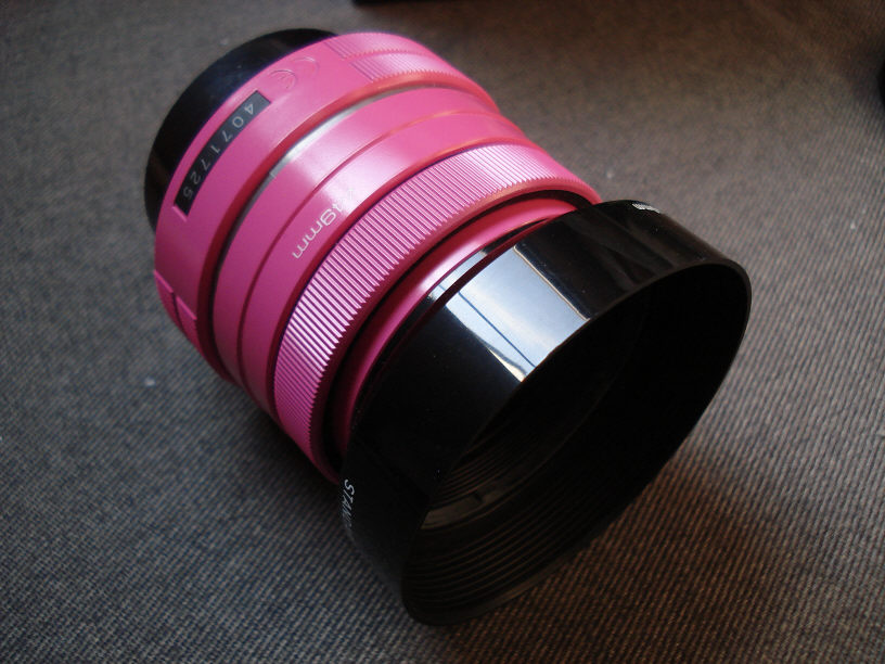 このレンズが届く前は余り気にしていなかったのですが、まさか「ピンク」のレンズが届くとは思っていませんでした。 この色を見た時点でオーナー様が女性だと気付く始末ですので(苦笑)。