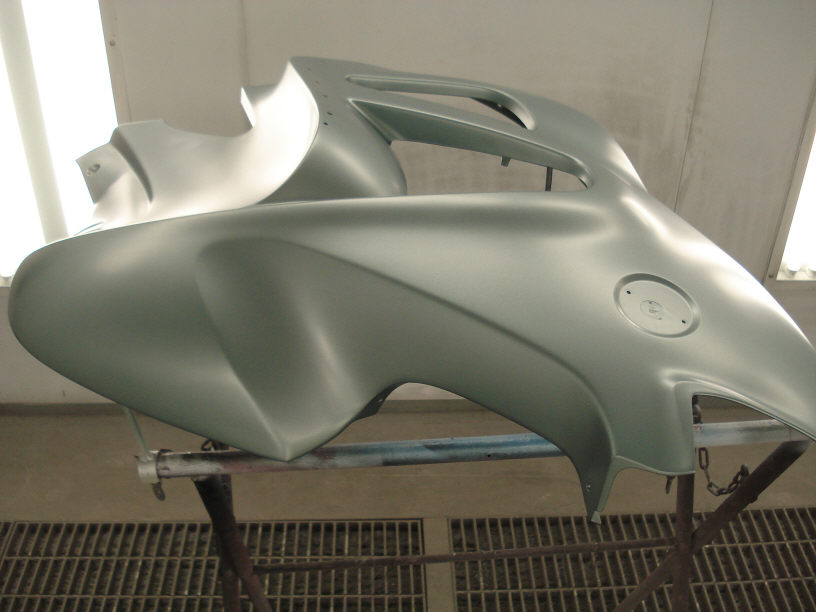 ですので調色作業もしてまして、さらにカウル全体にベースコート(色)を塗ったりはしません。 隣接パネルとの色違いを起こさない為ですね。