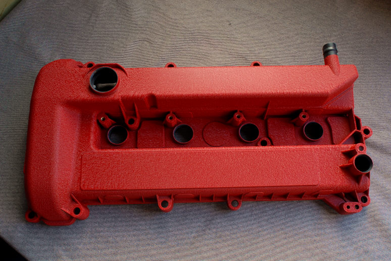 ちなみに素地がアルミのヘッドカバーの場合は、余程腐食が酷くなければサンドブラストでは無く「リン酸」で処理します。 前者が物理的な足付け処理に対して後者は化学的な足付け処理ですね。 ちなみにプラスチックにリン酸は通用しません。酸は金属に対して効果があるだけですので、塗装が施されていても効かないですね。 そういった意味で「塗装」は酸性下で保護の役割もあるのです。「保護」「美観」「識別」こそが塗装の役割ですので(塗装で一番最初に習った事です)。