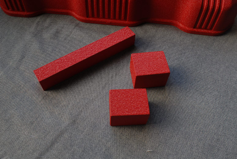 今回の結晶塗装のついでに塗った物です。 いつものブレーキ屋さんが作っているブレーキキャリパーのブラケットの廃材ですね。幅5センチ程度のアルミ材(ジュラルミン)です。