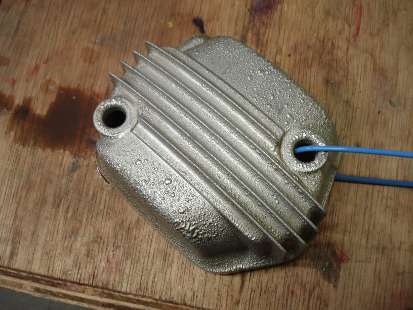 剥離溶剤槽に浸け置きしておいたエイプのヘッドカバーですね。 塗装されていない物かと思いきや、シルバーに塗られていました(勿論最初から気付いてましたが…)。