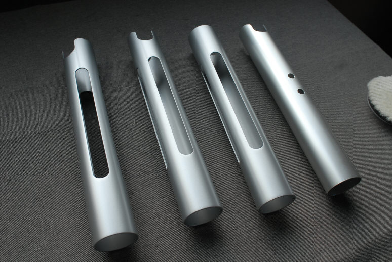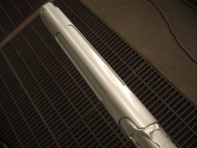 ご要望としては「未塗装のアルマイト仕上げのように」との事で、それに対応する塗装もあるのですが如何せんコストがかなり高くなりますので今回はそれに似た感じのシルバー(通常の2コート仕上げ)で、クリアーを「半艶」にすることで対応しました。