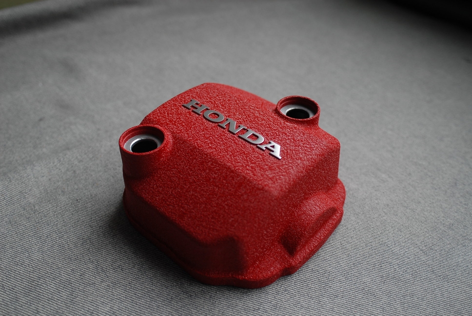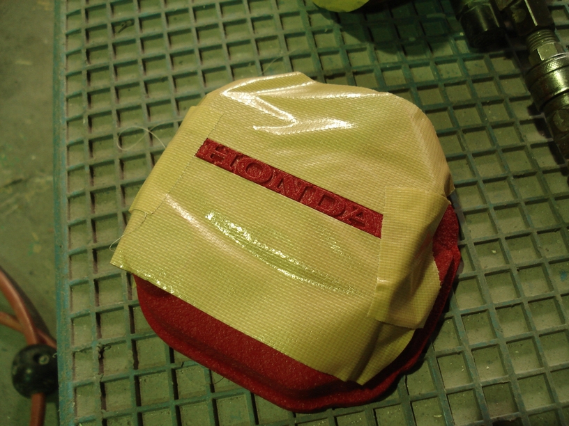 既に焼き付け済みで塗装自体は完成ですが、最後に「HONDA」の凸文字部分を削って光らせます。部品自体が余り目立つ所に付きませんから(苦笑)、やるだけの事はやって目立たせないと、ですね。