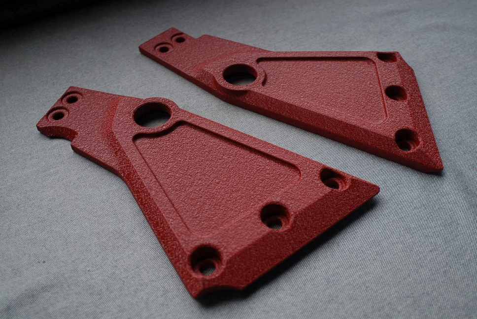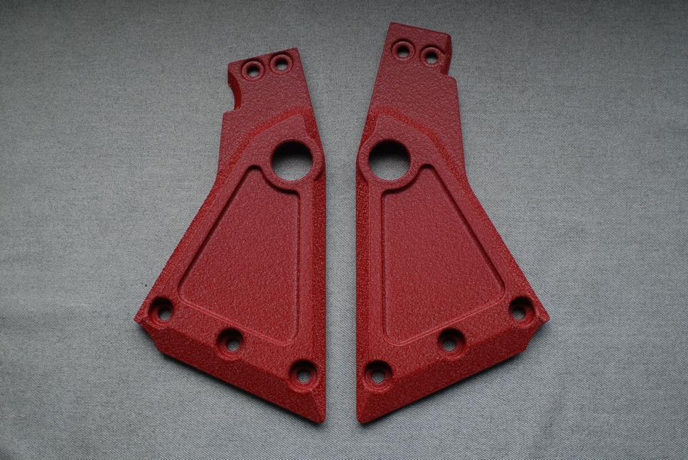 こちらは元々黒い樹脂素地剥き出しで、周りの部分はザラザラとした「梨地」だった部品です。