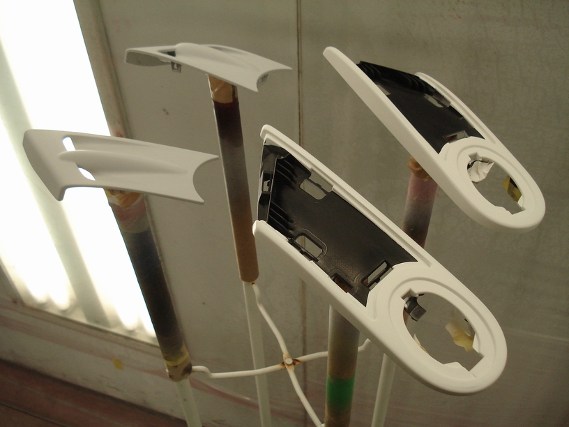 時々ご依頼のあるウィンドウォッシャーノズルですが、どれも共通するのは「水が出る部分はマスキングが必用」です。穴も一緒に塗ってしまうと水が出なくなりますからね…。
